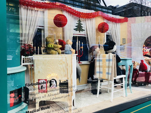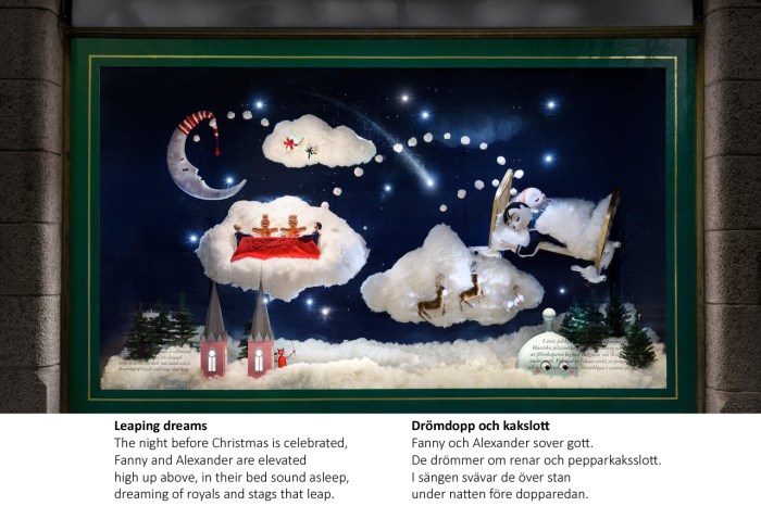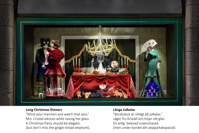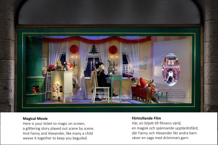 Nordiska Kompaniet copy för julskyltning: 6 fönster med julrim på svenska och engelska, Frilans