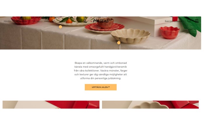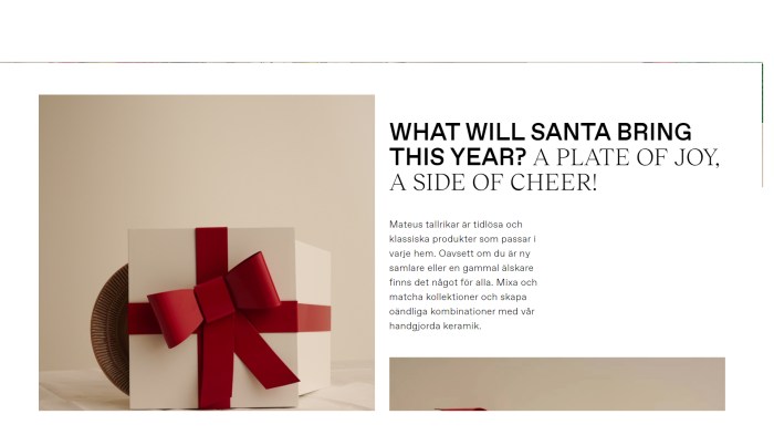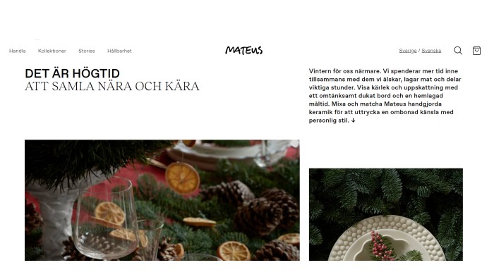 Webbplats & SoMe copy för Mateus Collection julkampanj (2022), Frilans